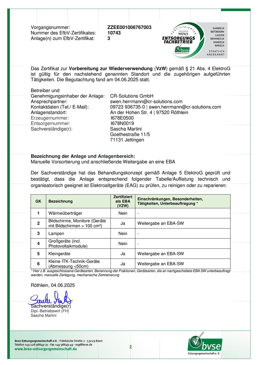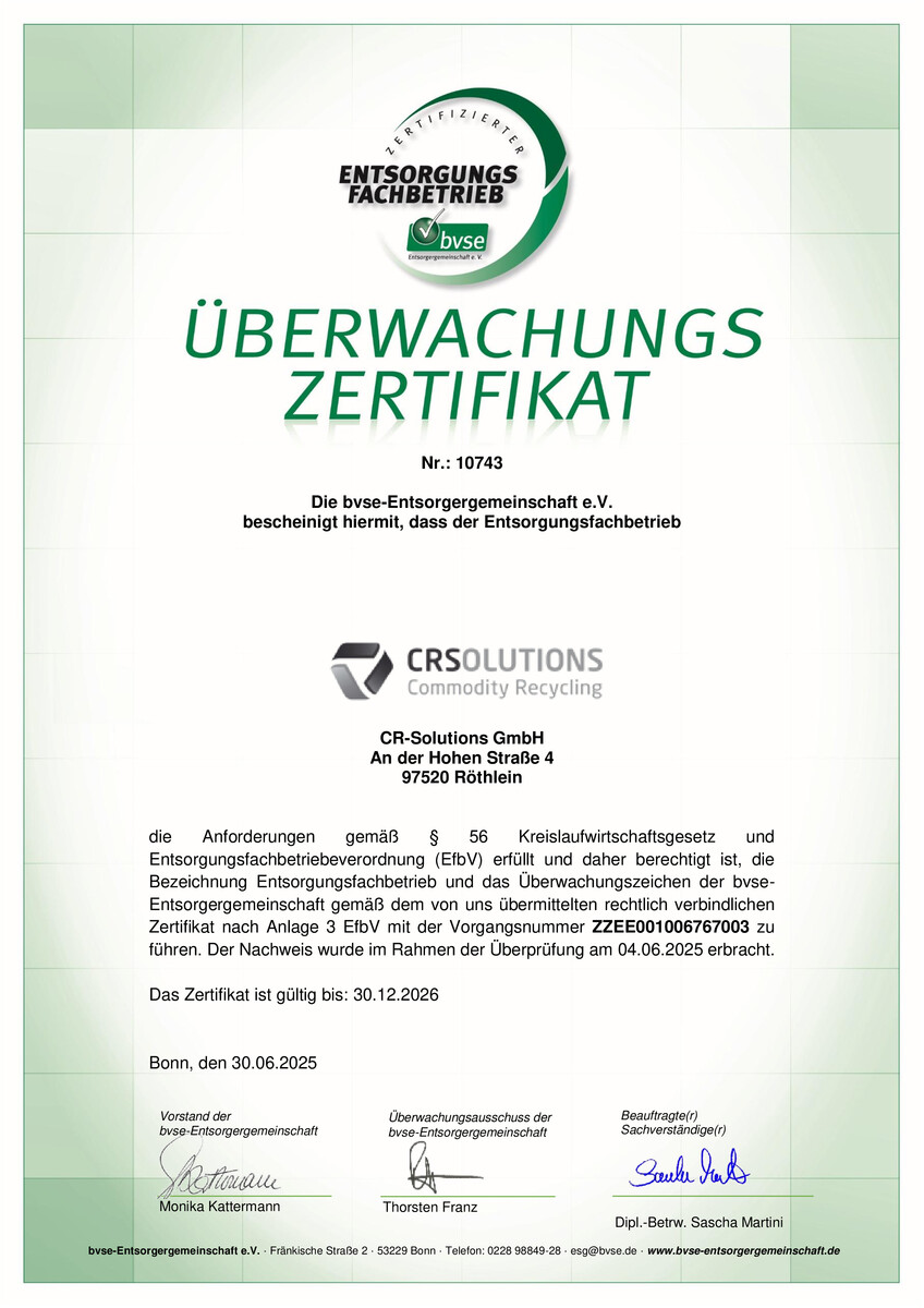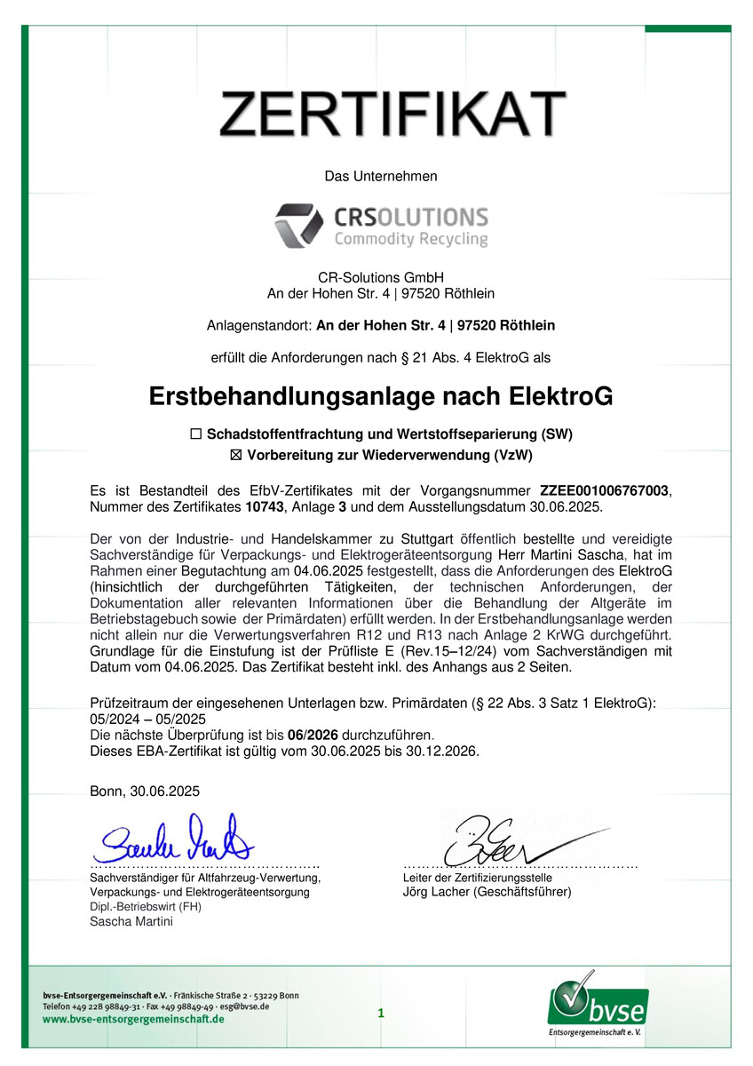 Gründliche Sortierung und zertifizierte Aufbereitung zur Weiterverarbeitung
